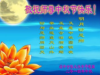 在這萬家和樂的節日裏,叩首恭祝慈悲偉大的師尊中秋節快樂!我們一定努力跟上正法進程,做好三件事,不辱師尊的慈悲救度。