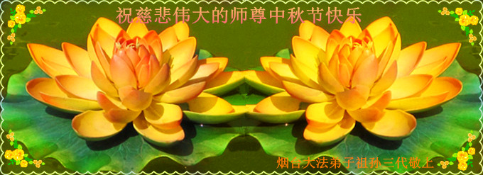中秋佳節倍思親,弟子想念師尊,感恩師尊的救度。弟子從一個滿身污泥和業力的人,能成為一名正法時期的大法弟子是多麼的自豪和榮幸。這一切都是師尊給的。我們沒有資格不做好師尊所要求的三件事。我們都知道,正法已經到了尾聲,時間是多麼珍貴。我們一定要抓緊時間多救人,修好自己,承擔起自己的責任,兌現誓約,不辜負師尊對我們的一片苦心。讓師尊多一份微笑,少一份操勞。這是我們所有弟子的心願。