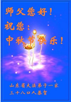 山東省大法弟子一家三十八口人恭祝慈悲偉大的師尊中秋佳節快樂!