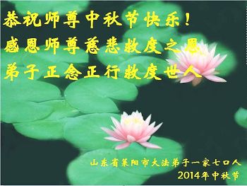 山東省煙台市萊州市一家大法弟子恭祝師尊中秋快樂!