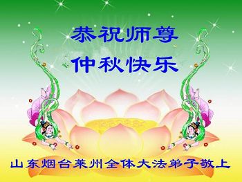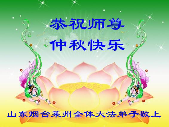 山東省煙台市萊陽市全體大法弟子向慈悲偉大的師尊致以最崇高的敬意和感恩,並恭祝慈悲偉大的師尊中秋佳節快樂!