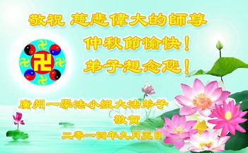 廣東省廣州一學法小組大法弟子敬祝慈悲偉大的師尊中秋節愉快!