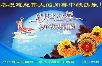 以此代表廣州天河區學法小組的大法弟子向慈悲偉大的師尊問候一聲中秋快樂!