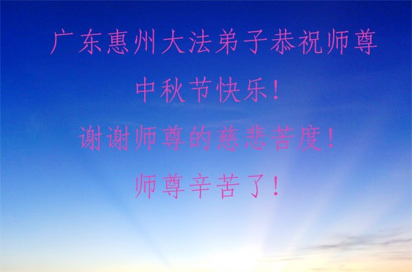 惠州大法弟子全家祝偉大的師尊中秋節快樂,感謝師尊傳宇宙最高法理予弟子,並用真善忍教導弟子,啟悟弟子智慧,讓弟子明白人生真諦,在世間做個更好的人,謝謝師尊!