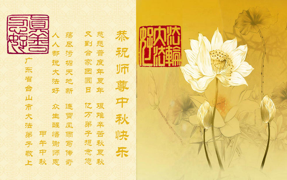 廣東省恩平市一大法弟子攜家人跪謝師父救度洪恩!恭祝師父中秋快樂!