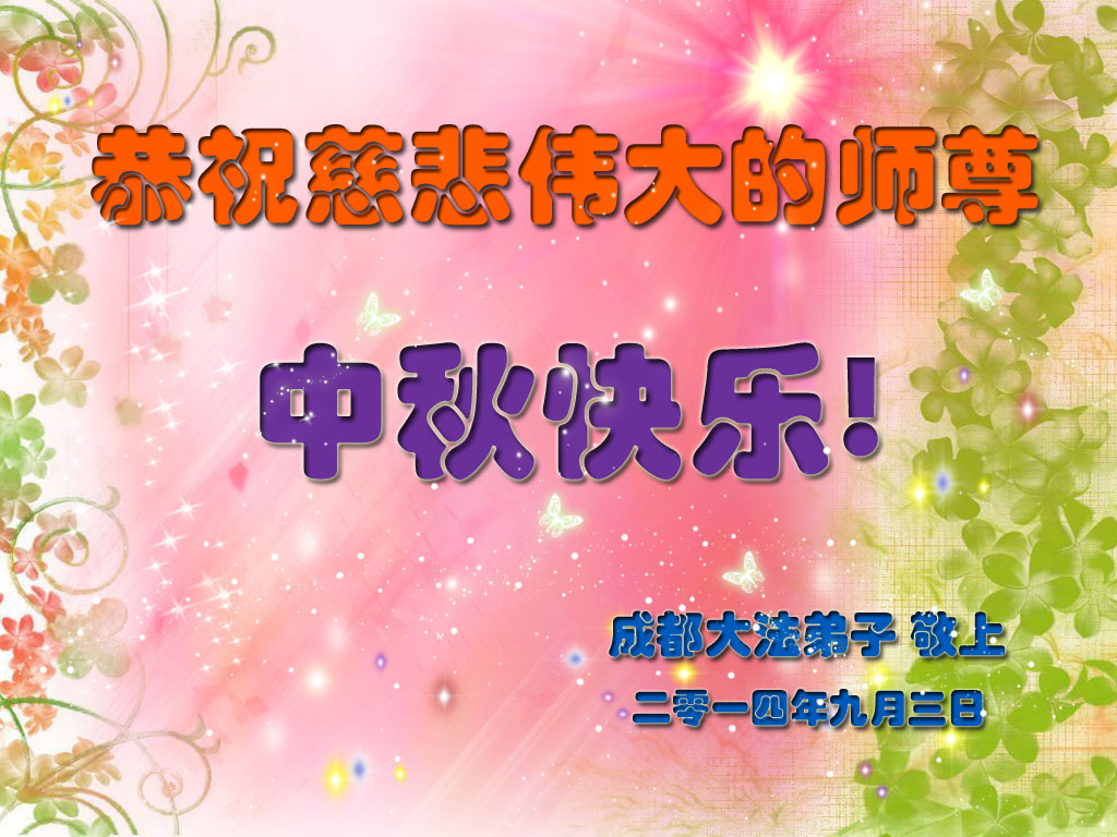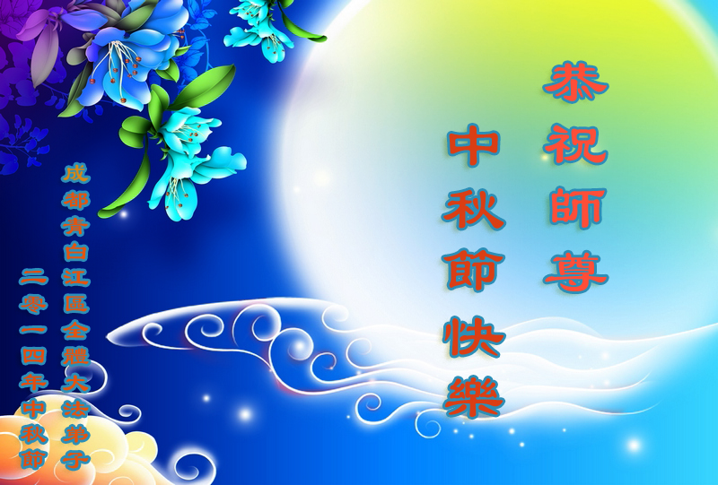 慈悲偉大的師尊您好!在中秋節到來之際,在這闔家歡樂的佳節裏,我們思念遠在海外的師尊,我們郫縣大法弟子想念您──師父,您辛苦了!