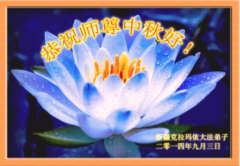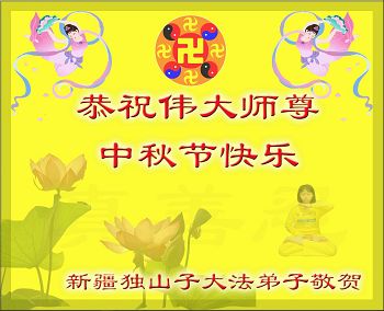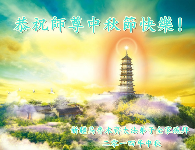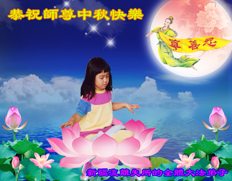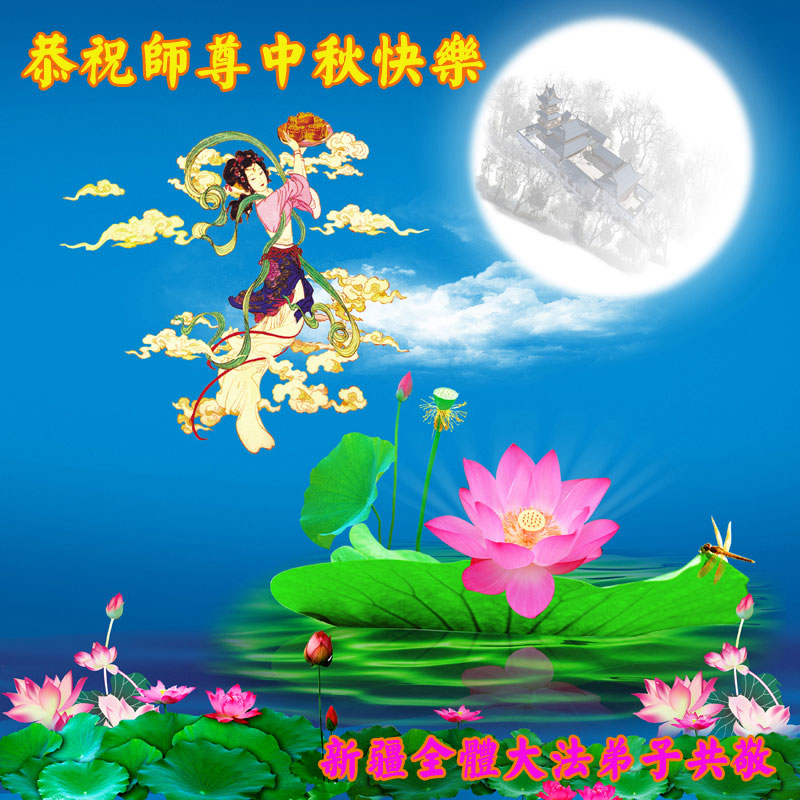 師恩浩蕩!佛光普照!新疆烏魯木齊大法弟子全家恭祝師尊中秋節快樂!唯有精進,做好三件事回報師恩。跪拜!合十!