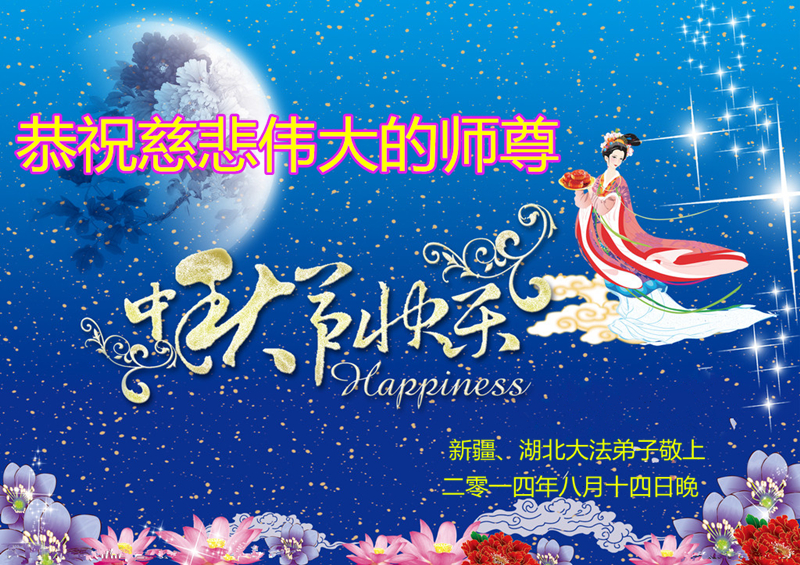 又是中秋明月夜,遙寄師尊感恩情。有幸成為正法時期的大法弟子,十五年沐浴在大法的佛恩浩蕩中,得於師父的慈悲苦度,萬分慶幸!萬分感恩!弟子一定在餘下不多的有限的時間裏,抓緊救人,精進實修,圓容大法,圓容整體,做好師父所要的,少留遺憾。弟子萬分想念慈悲偉大的師尊。叩謝師尊!祝師尊中秋快樂!