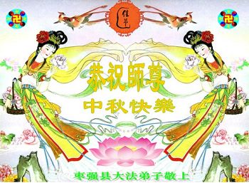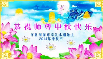 河北省邯鄲市峰峰礦區新市區一五人學法小組:恭祝慈悲偉大的師尊中秋節快樂,全組弟子決心在剩餘不多的時間裏,謹遵師命做好三件事,多多的救人。
