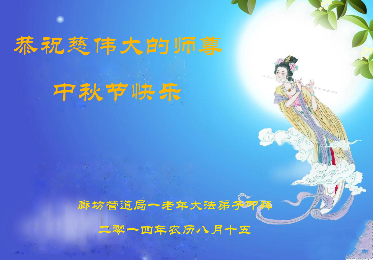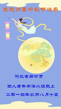 我們是河北省廊坊市某學法小組的大法弟子,值此中秋節來臨之際,我們真誠祝願偉大的師尊中秋節快樂!我們要認真做好三件事,多講真相多救眾生,兌現誓約,跟師尊回家。