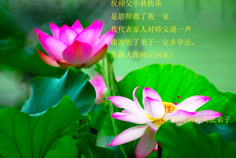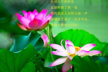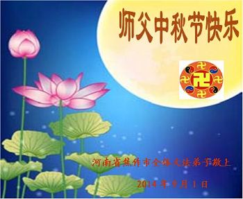 尊敬偉大的師父您好!值此中秋佳節之際,向偉大的師父致以節日的問候!我們今後要更加精進,助師正法,救度眾生,圓滿隨師還,!