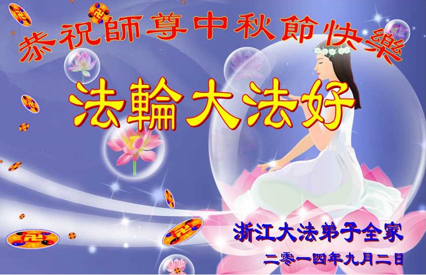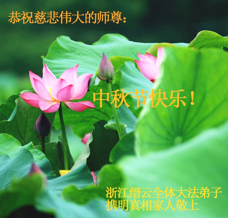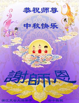 中秋節快到了,這本是一個大家團圓歡聚的日子。我們想念師尊,我代表我們全家向慈悲偉大的師尊問好!代表金華所有的大法弟子向慈悲偉大的師尊問好!