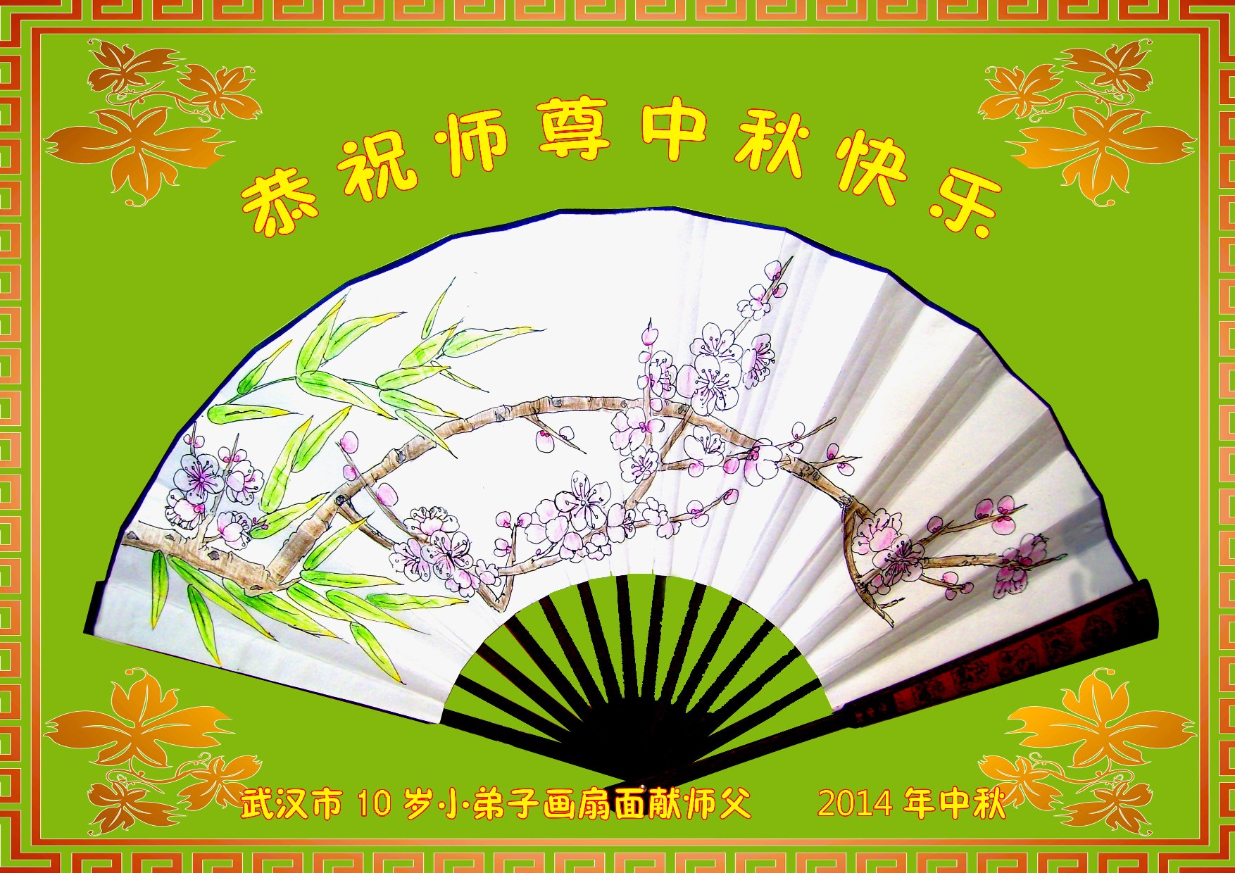 武漢市小弟子畫扇面獻師父,祝師父中秋快樂!