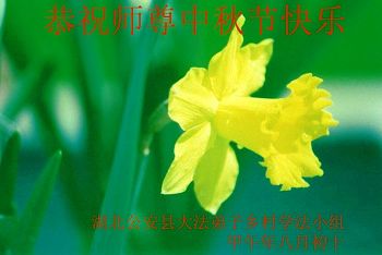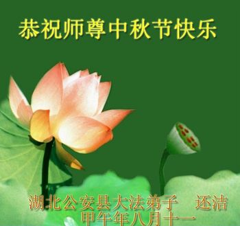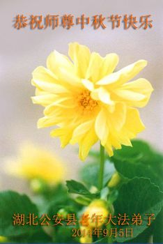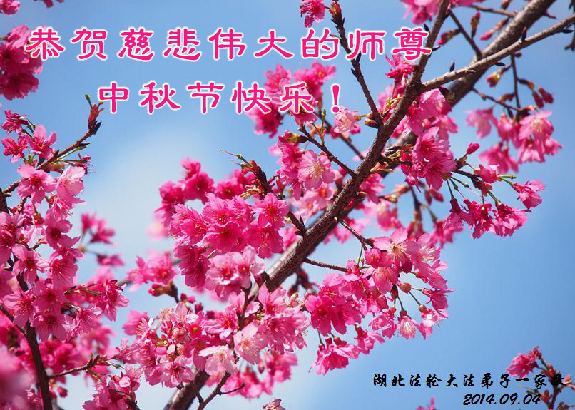 在2014年中秋節來臨之際,湖北咸寧溫泉大法弟子向慈悲偉大的師尊致以衷心的問候,祝師尊中秋節快樂!目前我們遇到了很大的困難,但我們一定能走過這黎明前的黑暗,請師父放心!