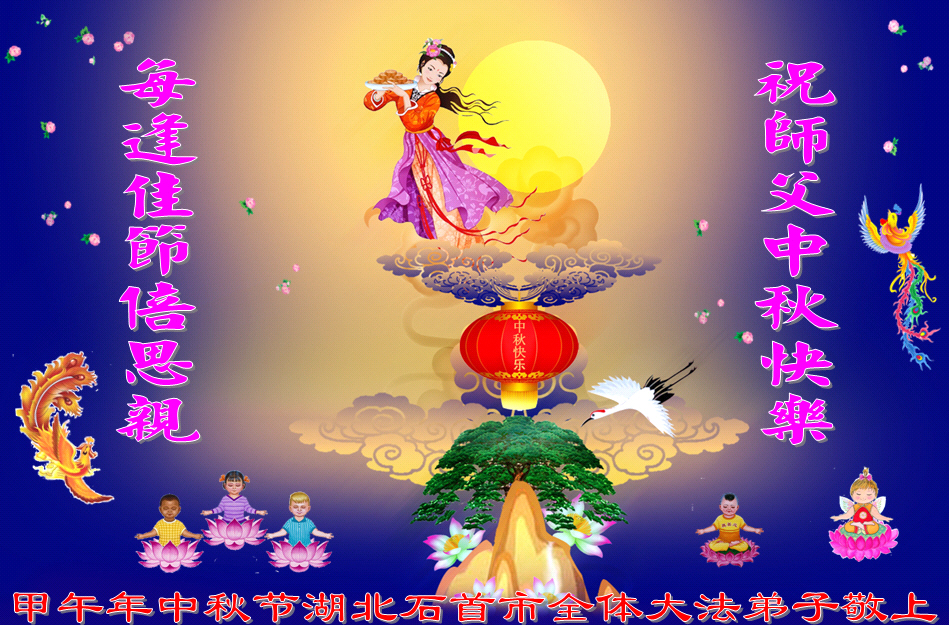 我們天門市大法資料點的弟子一直銘記師父的教誨,從邪惡瘋狂的迫害開始一直到現在都沒有間斷過的做真相資料,其間風風雨雨、摔摔打打,在實修中不斷走向成熟,是在偉大的師父呵護下走過來的,在此傳統佳節來臨之際,恭祝師父中秋節快樂,謝謝師父的慈悲救度!