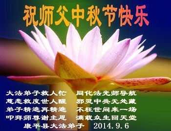 遼寧省瀋陽市全家五名大法弟子和周圍的多名大法弟子恭祝師父中秋快樂!