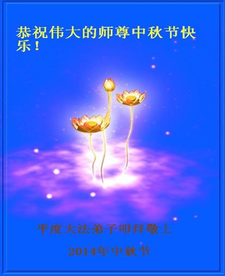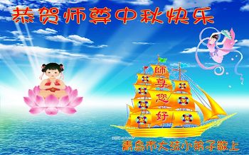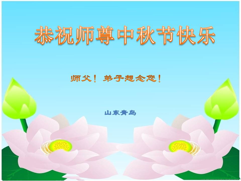 師尊:您好!感恩不盡師父的慈悲苦度,弟子一定做好三件事,修煉如初,救度眾生。師父啊,弟子非常想念您,盼望師父能早日回大陸與我們共度中秋佳節!合十