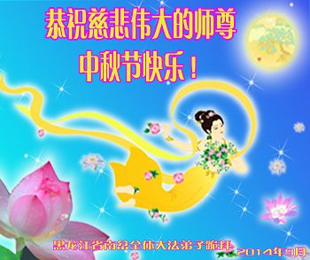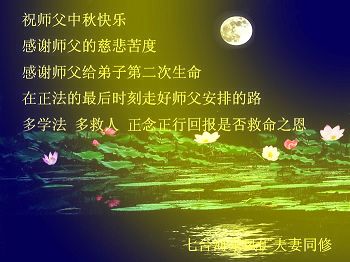 恭祝偉大的師尊中秋節快樂!黑龍江省七台河市山上一學法小組全體感謝師尊慈悲苦度,弟子唯有精進讓師尊少一分操勞多一份欣慰。