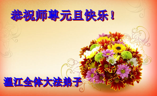 在這正法將要結束的時間裏,弟子要認真做好三件事,同時修好自己,整體配合、整體提高,跟師父回家。跪拜師父!我也代表我的家人(常人)15人問一聲法輪大法師父元旦節快樂!我們一定記住「法輪大法好,真、善、忍好」,做個好人,謝謝大法師父!