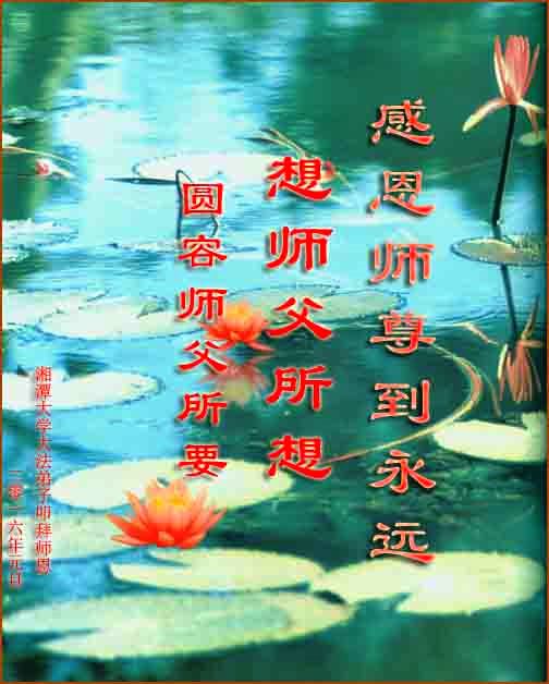 千年輪迴幸遇大法洪傳,萬古機緣喜得真經修煉。在這開天闢地都沒有的佛恩浩蕩下,弟子們幸運與師尊同在,能助師世間行,每當佳節來臨弟子們都無比的感恩與想念師尊!只有在未來不多的時間裏學好法,向內找,救度更多的眾生。弟子們盼望與師尊早日團聚,圓滿隨師還。