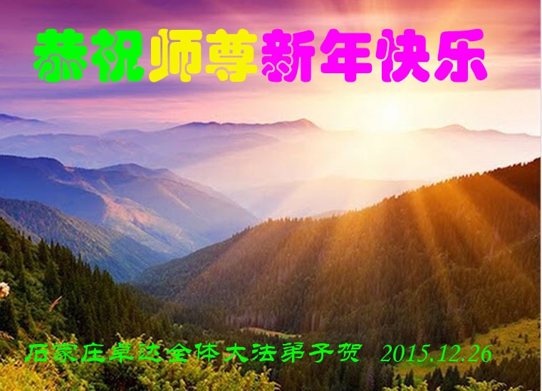 時間飛快的行進,二零一六年的腳步即將來臨。在這萬象更新、闔家團圓的時刻,我們沐浴師父的洪恩,對師父無比的感恩。在新的一年裏,在助師正法的修煉路上,我們一定銘記師父的教誨,多學法,學好法,找出差距,配合整體,共同精進,做好三件事,圓滿隨師還。