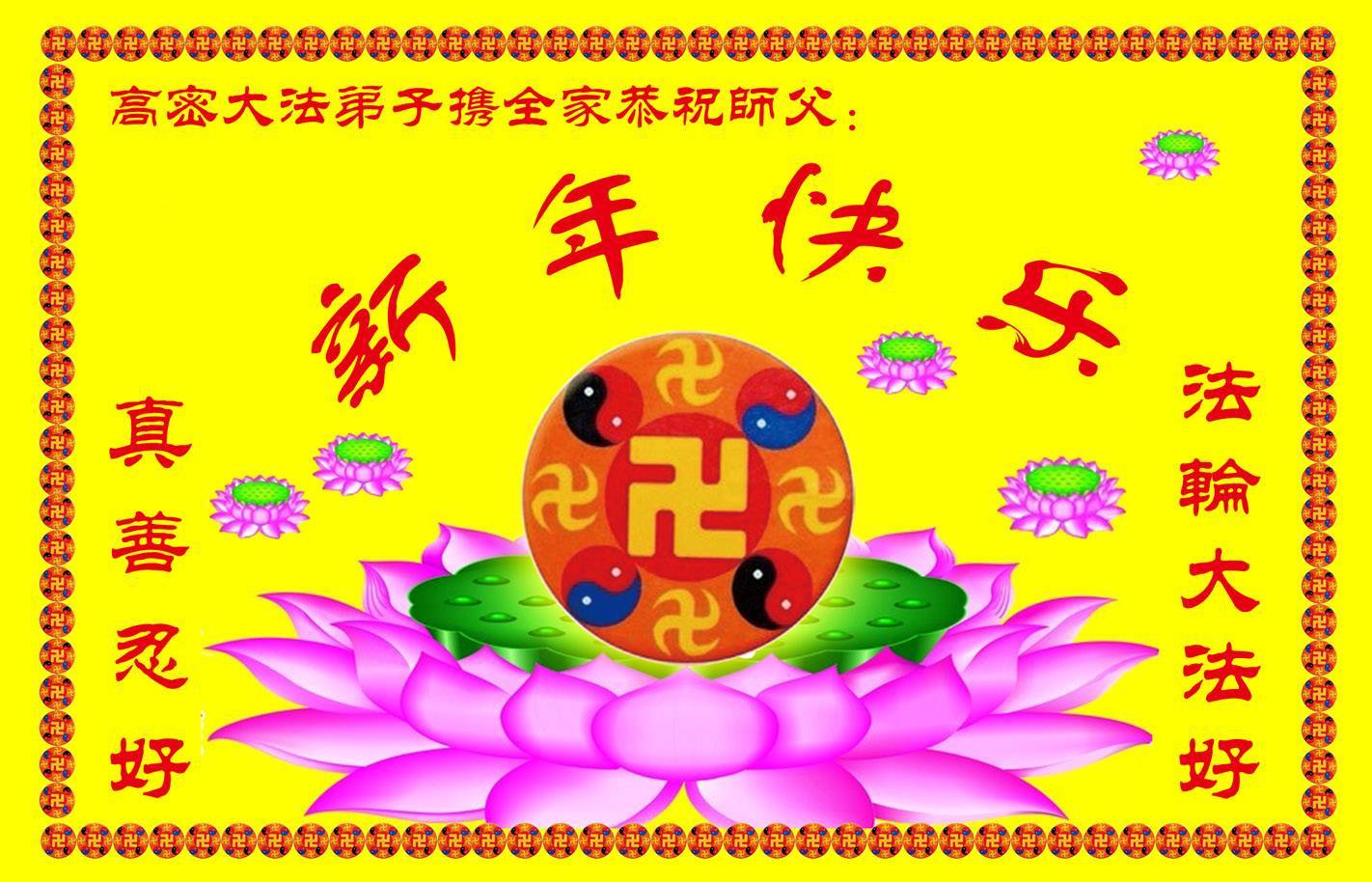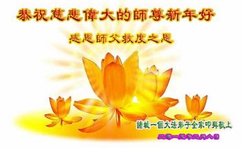 師尊過年好!弟子感恩師父,感恩法輪大法的慈悲苦度。在這正法的最後時刻,弟子一定做好三件事,不斷精進,向內找,去執著,兌現誓約,決不辜負師尊的期盼與洪恩。跟師父回家。弟子代表家人同修,叩拜祝福師尊新年快樂!