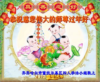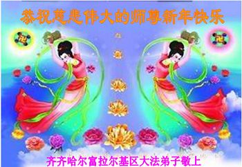 黑龍江省齊齊哈爾市富拉爾基區一學法小組大法弟子恭祝師父過年好!