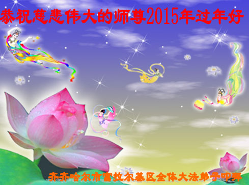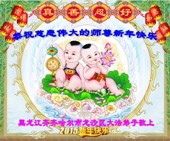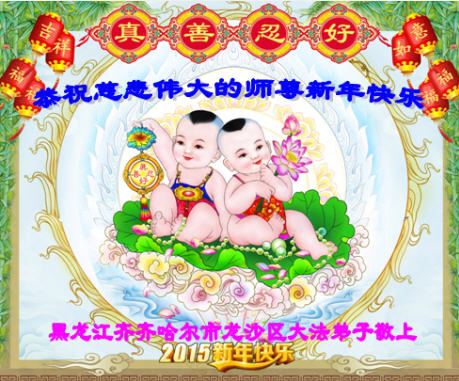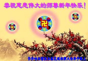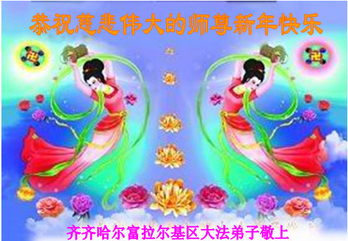 黑龍江省齊齊哈爾市富拉爾基區大法弟子及全家恭祝師尊新年快樂!