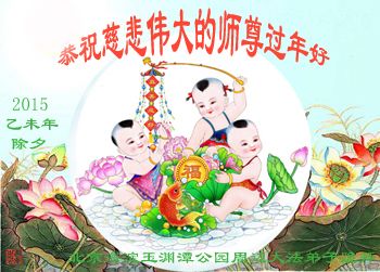 值此2015新年來臨之際,我們學法小組全體大法弟子共同恭祝慈悲偉大的師父新年快樂!並由衷的感謝您對我們的慈悲苦度和對眾生的救度。我們繼續做好三件事,修好自己,在最後的時間裏多救人,不辜負師父對我們的期望。再一次恭祝師父新年快樂!