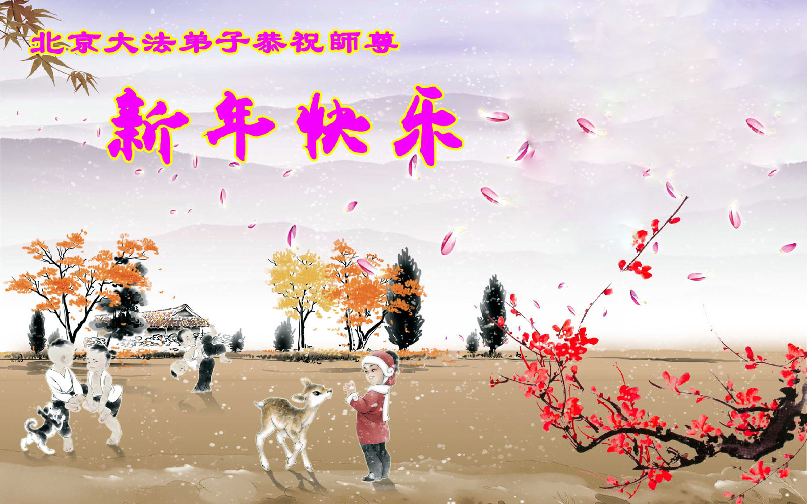 北京大法弟子恭祝偉大慈悲的師尊新年快樂!
