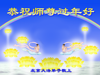 我們北京大法弟子跪拜師父,師父新年好!感謝師父的一路看護、加持!感謝師父為宇宙所有眾生的操勞與付出!弟子們一定會勇猛精進,在新的一年裏一定做好三件事,多救人,讓師尊多一份欣慰,少一份操勞。修好自己,做一名合格的大法弟子!圓滿隨師還。