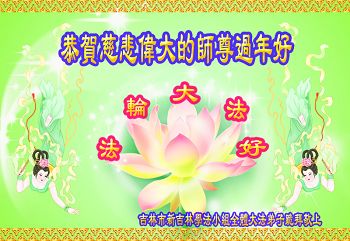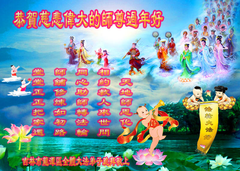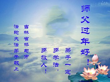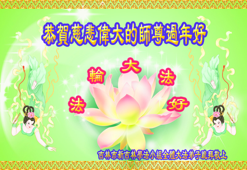 在中國的傳統新年來臨之際,我們學法小組全體同修向慈悲偉大的師尊獻上最誠摯的問候!師尊新年好!師尊您辛苦了!請師尊放心,我們一定不辜負師尊的期望,修好自己多救人,完成自己的史前大願,助師正法救度眾生。讓師尊多一份欣慰。