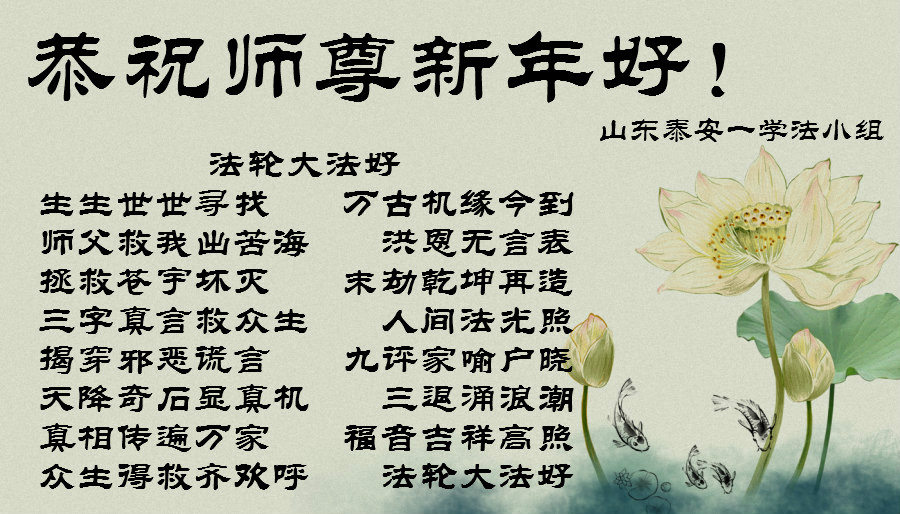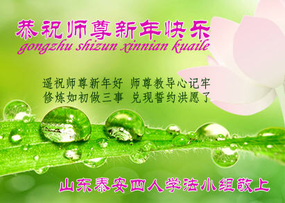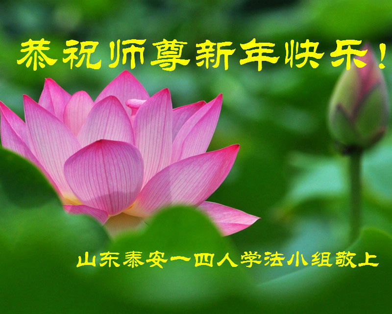 山東泰安一四人學法小組大法弟子恭祝師尊新年快樂!