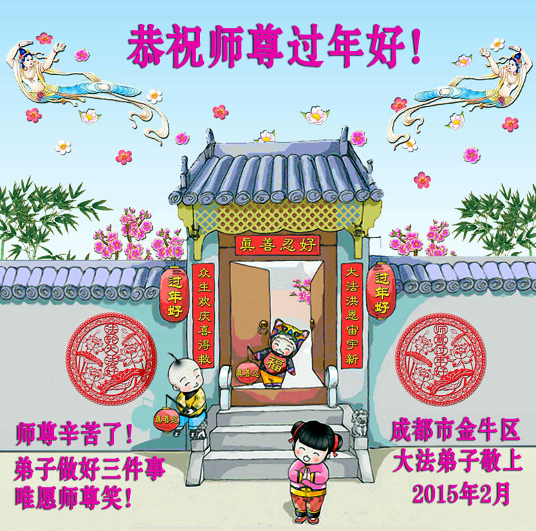 尊敬的師父,乙未年的新年即將到來,我們成都迎春學法小組大法弟子恭祝慈悲偉大的師尊新年快樂!萬事如意!