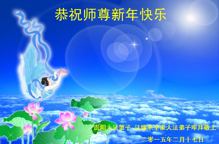 在中國羊年新年到來之際,我們代表貴州省貴陽市大法弟子向慈悲偉大的師尊致以最崇高的敬意和最誠摯的問候:師尊過年好!師尊您辛苦了!在新的一年裏,我們將一如既往遵循師尊的教導,做好三件事,盡最大的努力救度眾生,兌現我們的史前誓約,圓滿隨師還。