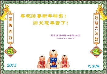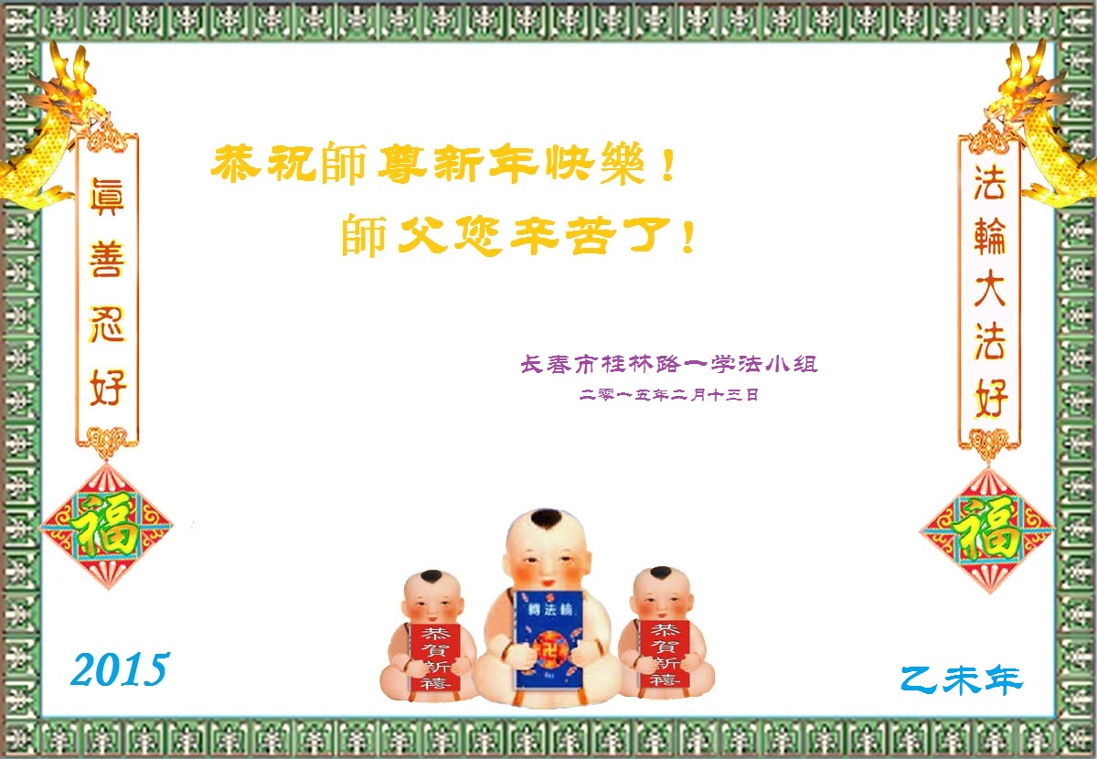 在中國大陸新年羊年來到時:榆樹市全體大法弟子給師尊拜年!恭祝師尊過年快樂!