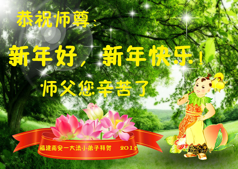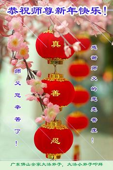 廣東佛山全家大法弟子、大法小弟子恭祝師尊新年快樂!
