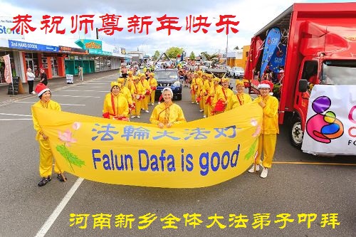 河南新鄉一大法弟子攜全家:恭祝師尊新年快樂!