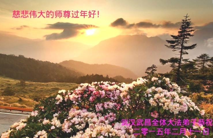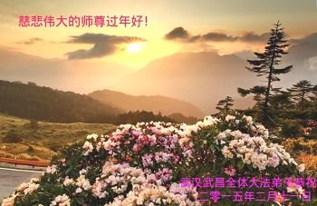 2015年即將到來,武漢市漢陽區一個九人學法小組全體弟子懷著無比感恩的心向慈悲偉大的師尊拜年!在此也感謝師尊在這亙古未有的歷史關鍵時刻親身降臨,拯救寰宇。感謝您給予我們寰宇眾生的未來和希望。