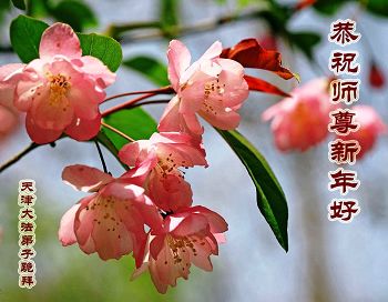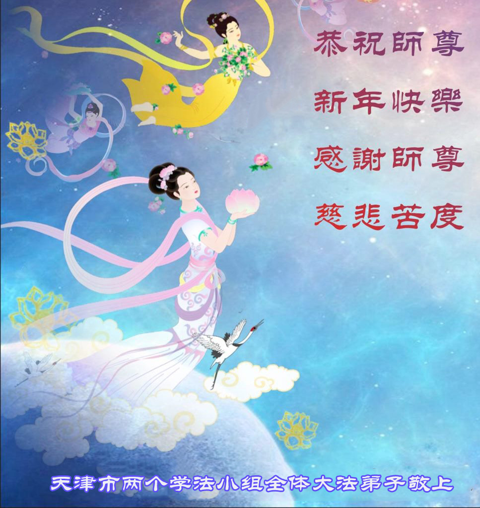 祝師尊在新的一年裏多些欣慰,少些操勞。感謝師尊把蒼穹救度!感謝師尊無償的為弟子們和宇宙眾生承受了無法想像的巨難,才使舊宇宙和眾生們走到今天,才使被邪黨欺騙的更多的眾生在真相面前,有明辨是非善惡選擇未來的機會。感謝師尊不但把我救度,還救我的家人們。