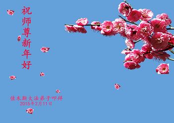 初春雪慢慢,人間處處新。點滴的變化,都包含著師尊的辛苦。感恩師尊的慈悲苦度!在這辭舊迎新,新春佳節到來之際,送上弟子對師尊最衷心的祝賀,祝師父新年快樂!在新的一年裏,我們會更加努力實修自己,時刻不忘自己是法輪大法的修煉弟子,做好三件事,堅決走好師父安排的路。拜謝師尊!