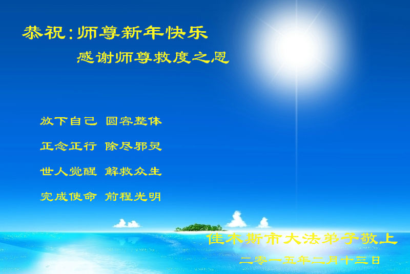 黑龍江省佳木斯溫州城學法小組大法弟子恭祝師尊新年快樂!
