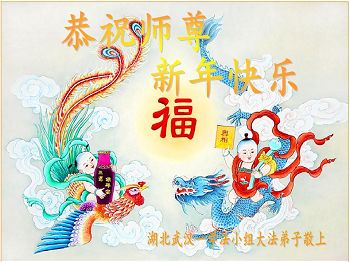值此新年之際,弟子代表武漢東湖高新區一學法小組全體大法弟子,武漢漢口一學法小組全體大法弟子,祝賀師父新年好,在新的一年裏,多學法,學好法,多救人,做師父的好弟子,惟願師尊笑。