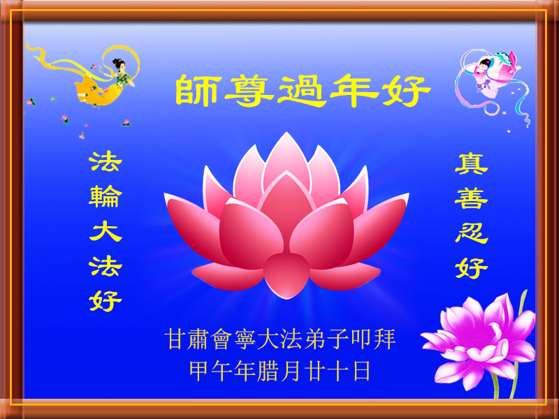 我們是甘肅會寧一家八口人,恭祝慈悲偉大的師尊新年好。我們一家相處和睦,其樂融融,都是大法賜予的福份。我們感激恩師的救度。做好我們要做的事。讓能與我們相處的所有人都知道大法的美好,讓善良人都有美好的未來。