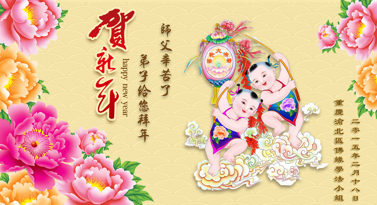 尊敬的師父好,師父辛苦了,在羊年新春之際,合川一大法弟子代表自己和孩子們給師父拜年,恭祝師尊新年好!