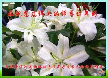 師父,大法弟子們正努力的做著應該做的三件事,兌現著大法弟子的誓約,做一個符合大法要求的高級生命,做恩師的合格弟子。最後大法弟子們祝恩師節日快樂!