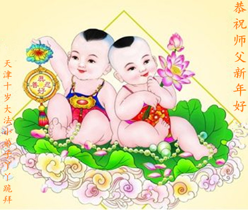 天津十歲大法小弟子丫丫恭祝師父過年好!跪拜師父!