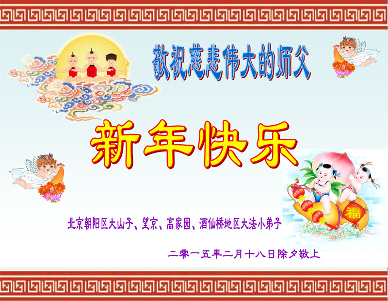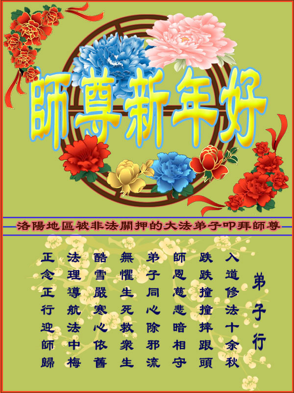 新年到了,弟子在此叩拜師父!師父過年好!師父您辛苦了!我們全家感謝您的慈悲呵護與救度,弟子在新的一年裏一定努力做好三件事,抓緊救度眾生,全盤否定舊勢力的一切安排,走好師父安排的路。