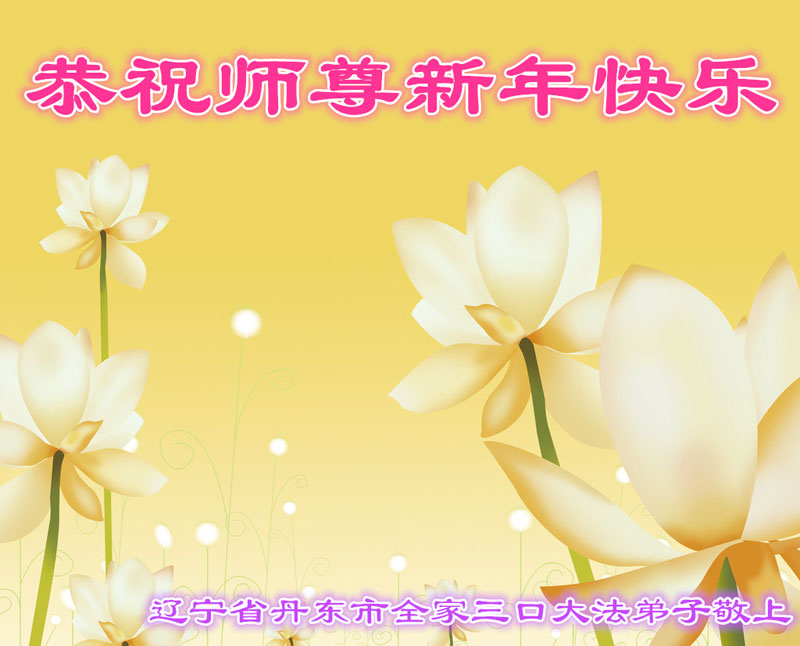 遼寧省丹東市全家三口大法弟子恭祝師尊新年快樂!