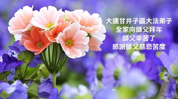 大連甘井子區大法弟子全家向師父拜年!師父新年好!我們想念您!